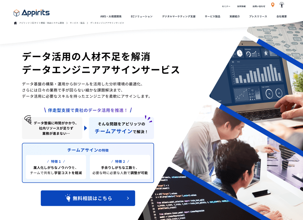 株式会社アピリッツ(本社:東京都渋谷区、CEO:和田 順児)は、データ活用人材不足にお悩みの企業様へ向けて、データ専門チームを柔軟にカスタマイズして提供するサービスを開始したことをお知らせします。