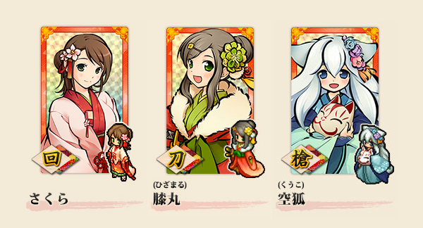 ※特別な「膝丸」「空狐」はキャンペーン限定の特別版の式姫で、通常版とは札イラストおよび庭に出した時のアニメーションが異なります。